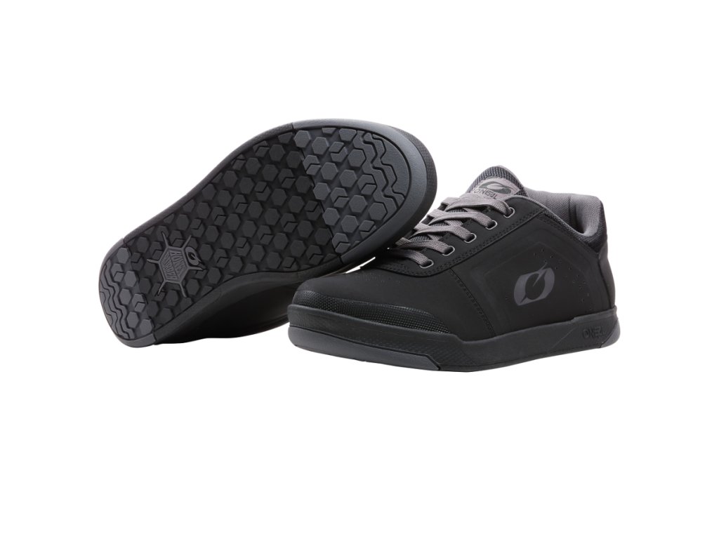 Zcela nový model bot pro flat pedály. Unikátní O'Neal Honey Rubber® podrážka poskytuje maximální rovnováhu mezi přilnavostí a možností přemístění nohy. Vyšší vnitřní strana bot chrání vaše kotníky při šlapání. Konstrukce podrážky a horní části boty poskytuje perfektní kombinaci pevnosti a pružnosti, pro maximální efektivitu šlapání a pohodlí. Zesílená špička pro větší ochranu. Dodatečné boční prošití podrážky pro větší trvanlivost