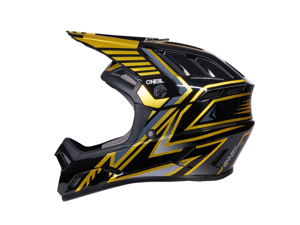 Bikrosová/DH/ENDURO přilba vyrobená z ABS s mnoha ventilačními otvory pro lepší odvětrání a chlazení. Matné provedení. Odolná vícebarevná grafika. Velmi jemné, pot absorbující a pratelné polstrování. O'Neal Fidlock® magnetické zapínání snadno ovladatelné jednou rukou, pro jednoduché zapínaní a rozepínání, poskytující maximální bezpečnost při jízdě. Kompatibilní s Airflaps™. Předinstalované zalamovací bezpečnostní šrouby kšiltu pro vyšší bezpečnost v případě pádu. Výškově nastavitelný kšilt. Převyšuje požadavky normy EN1078 pro cyklistické přilby.
